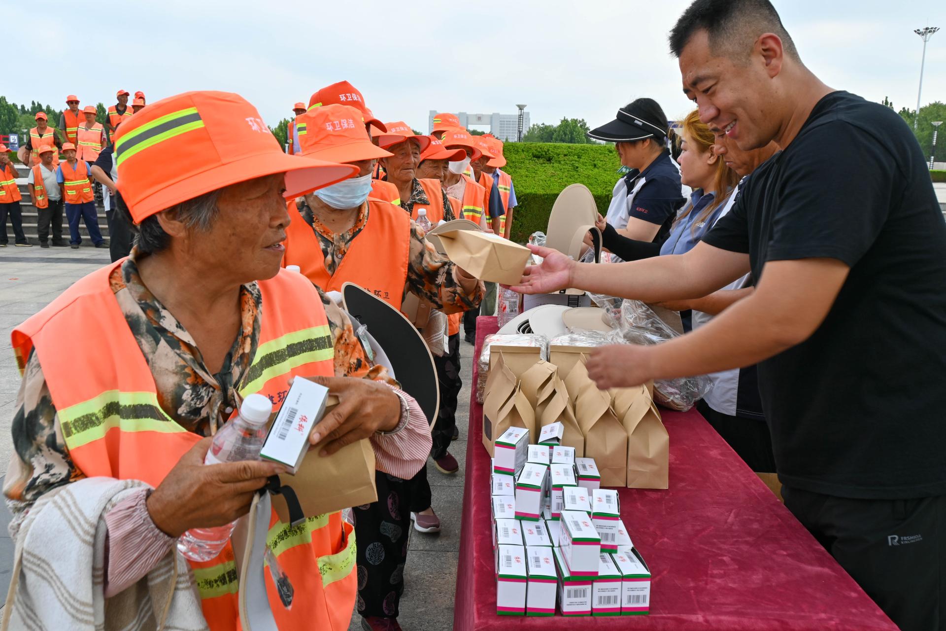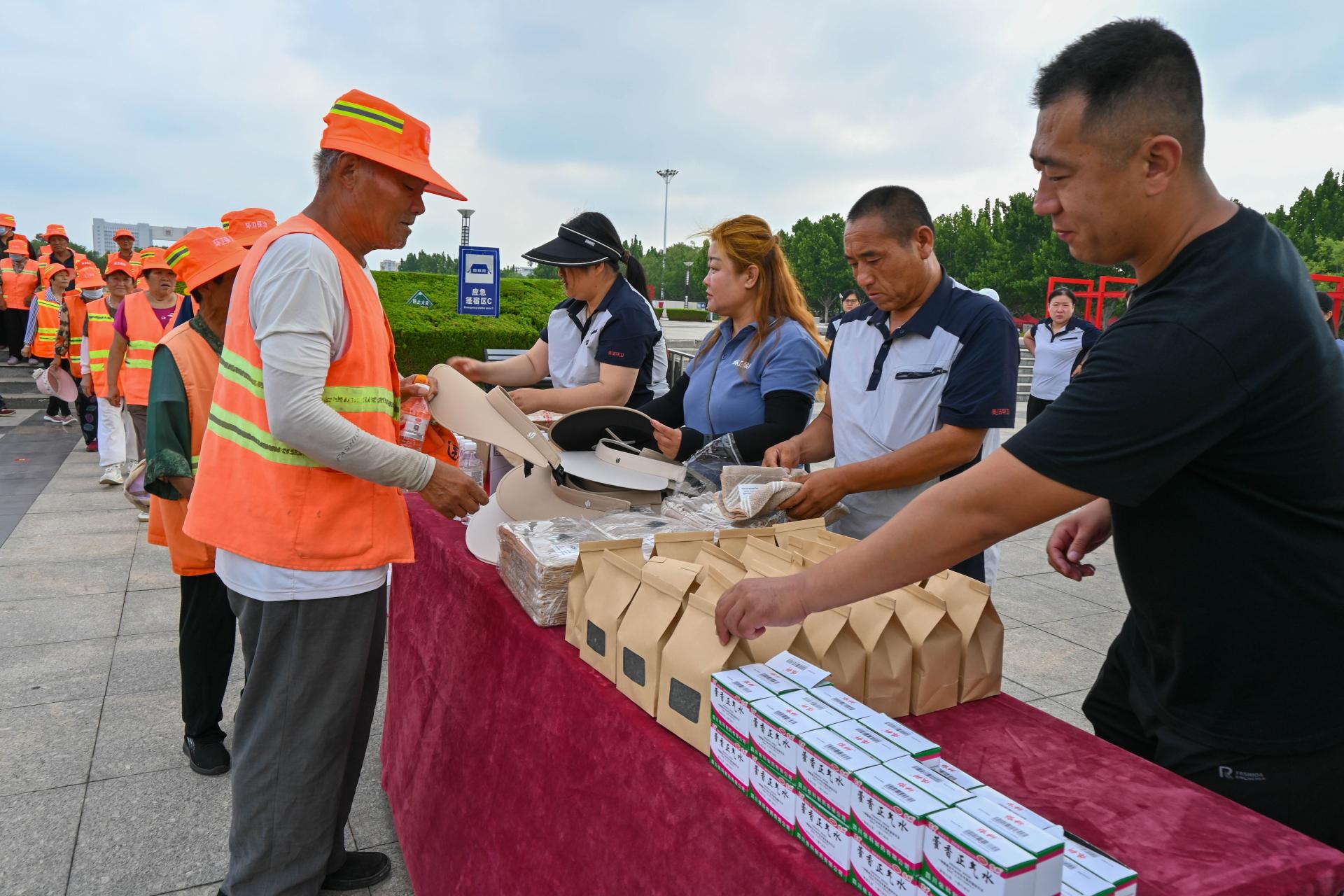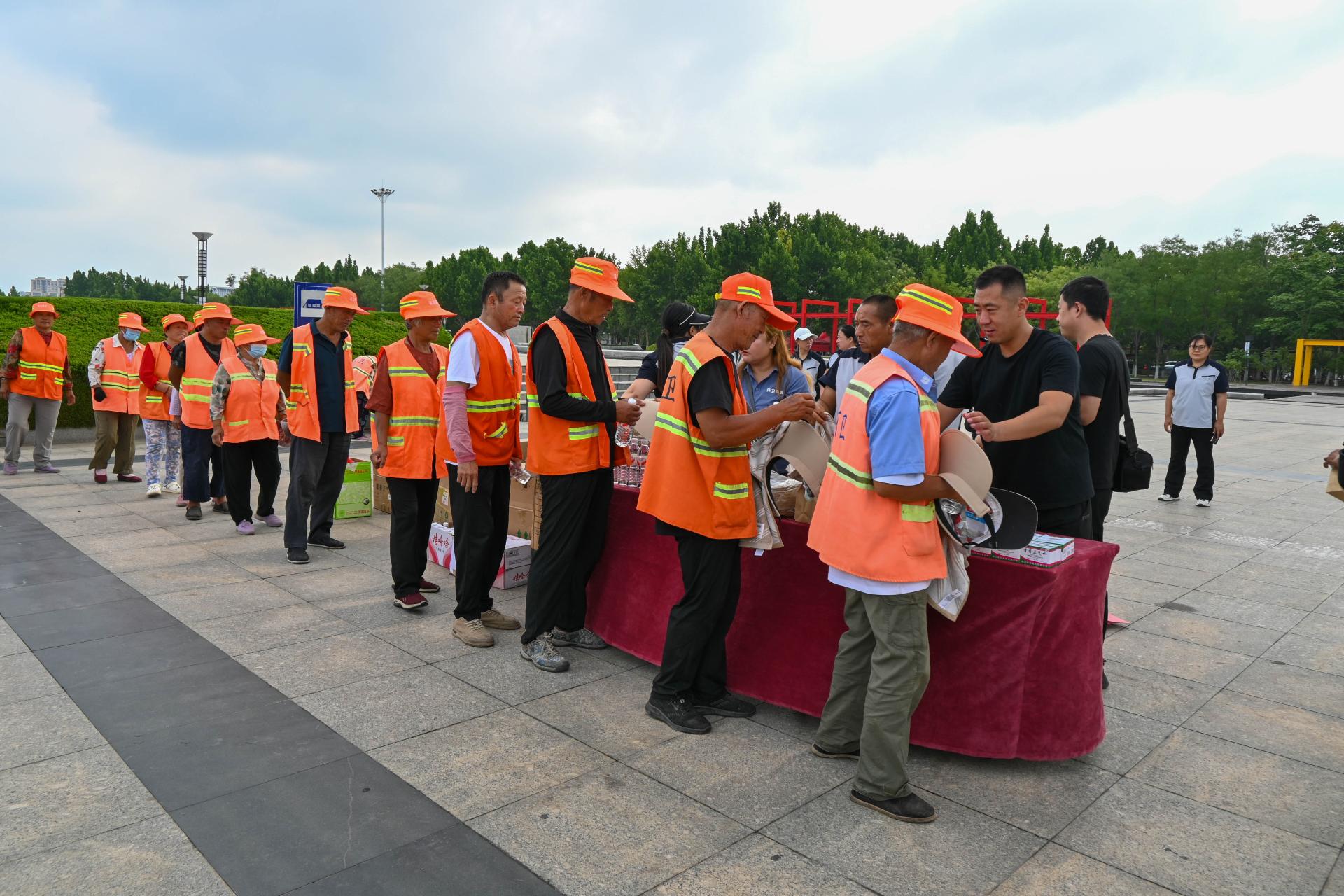 近期夏日高温炎热,无棣县综合行政执法局志愿服务队组织志愿者到新区广场为环卫工发放防暑物资,表达对他们辛勤工作的感谢和敬意
