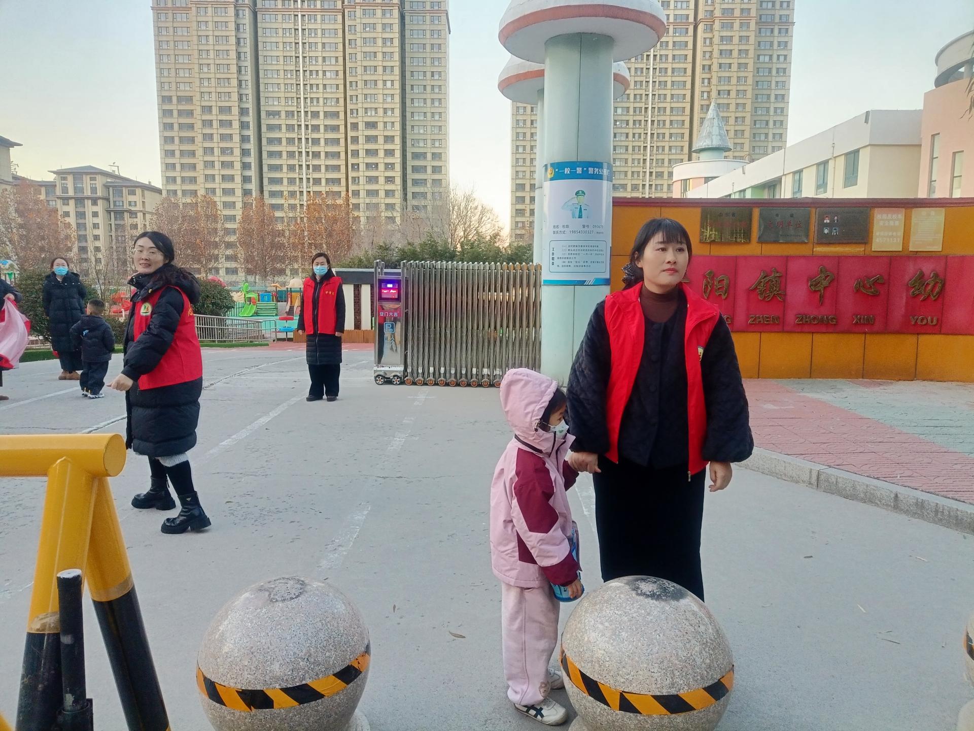志愿者教师提前到岗,疏导校门口及周边交通,引导家长车辆有序停放,避免拥堵;协助各班教师护送幼儿,防止错接、漏接。