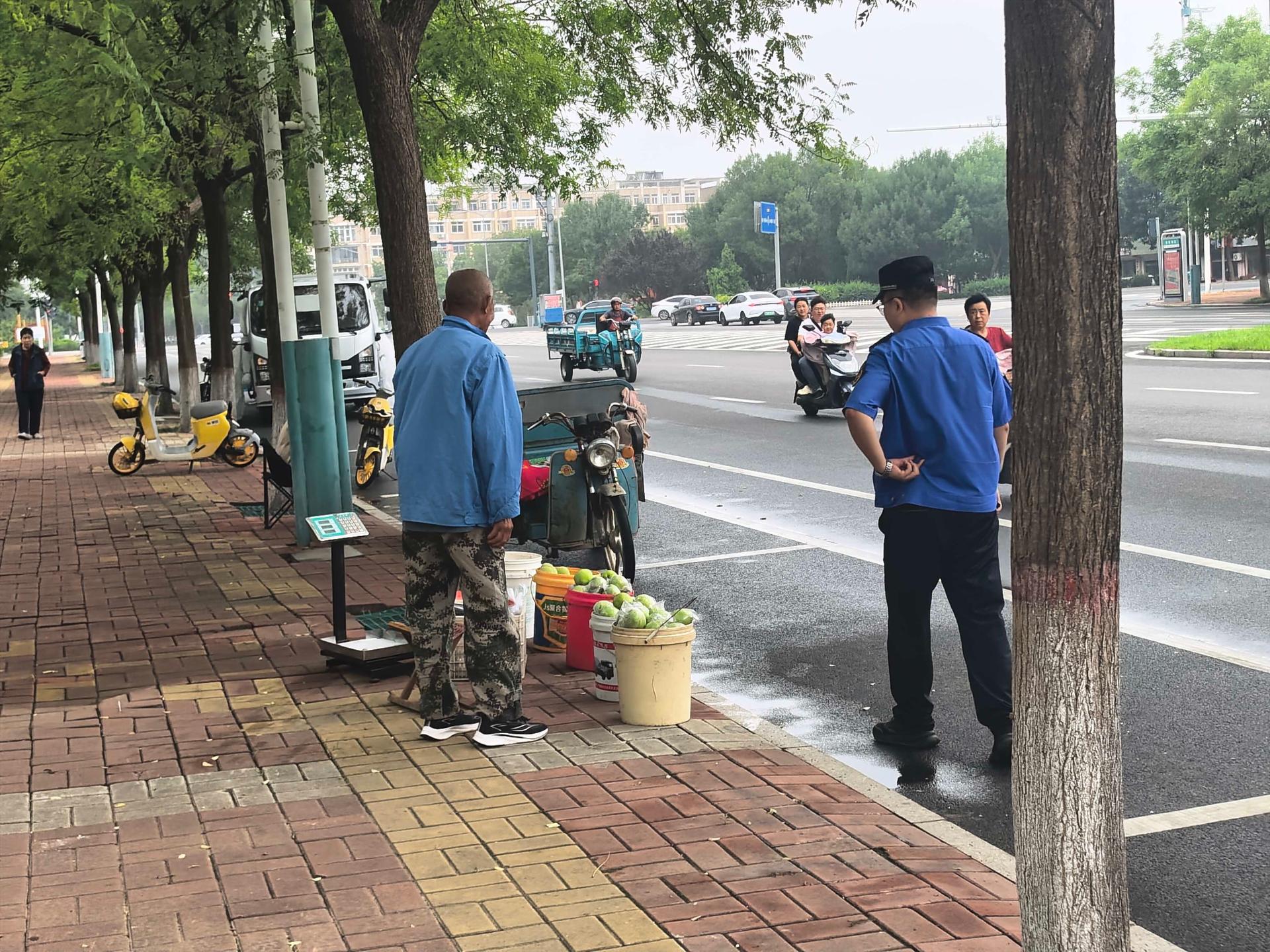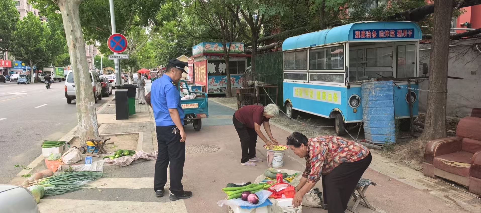 无棣县综合行政执法局志愿服务队组织志愿者在2025年秋季开学前对校园周边影响学生安全的占道经营,乱停乱放等行为进行排查整治。