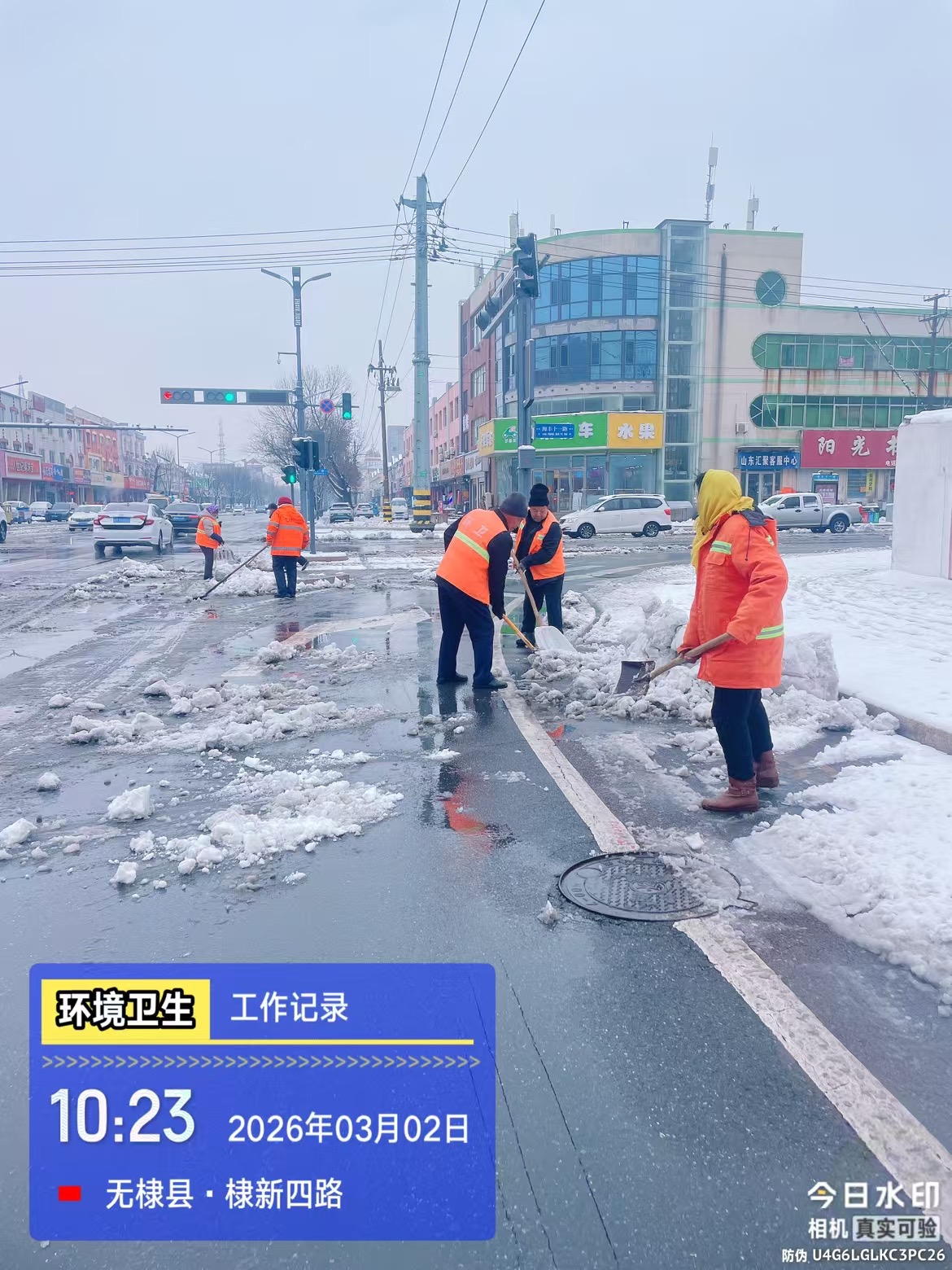 无棣县综合行政执法局志愿服务队组织志愿者到县城区街道进行扫雪除冰志愿活动,对城区积雪进行清理,保障居民群众的出行安全