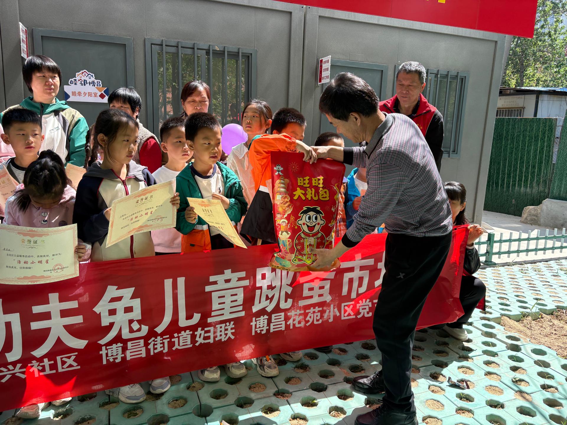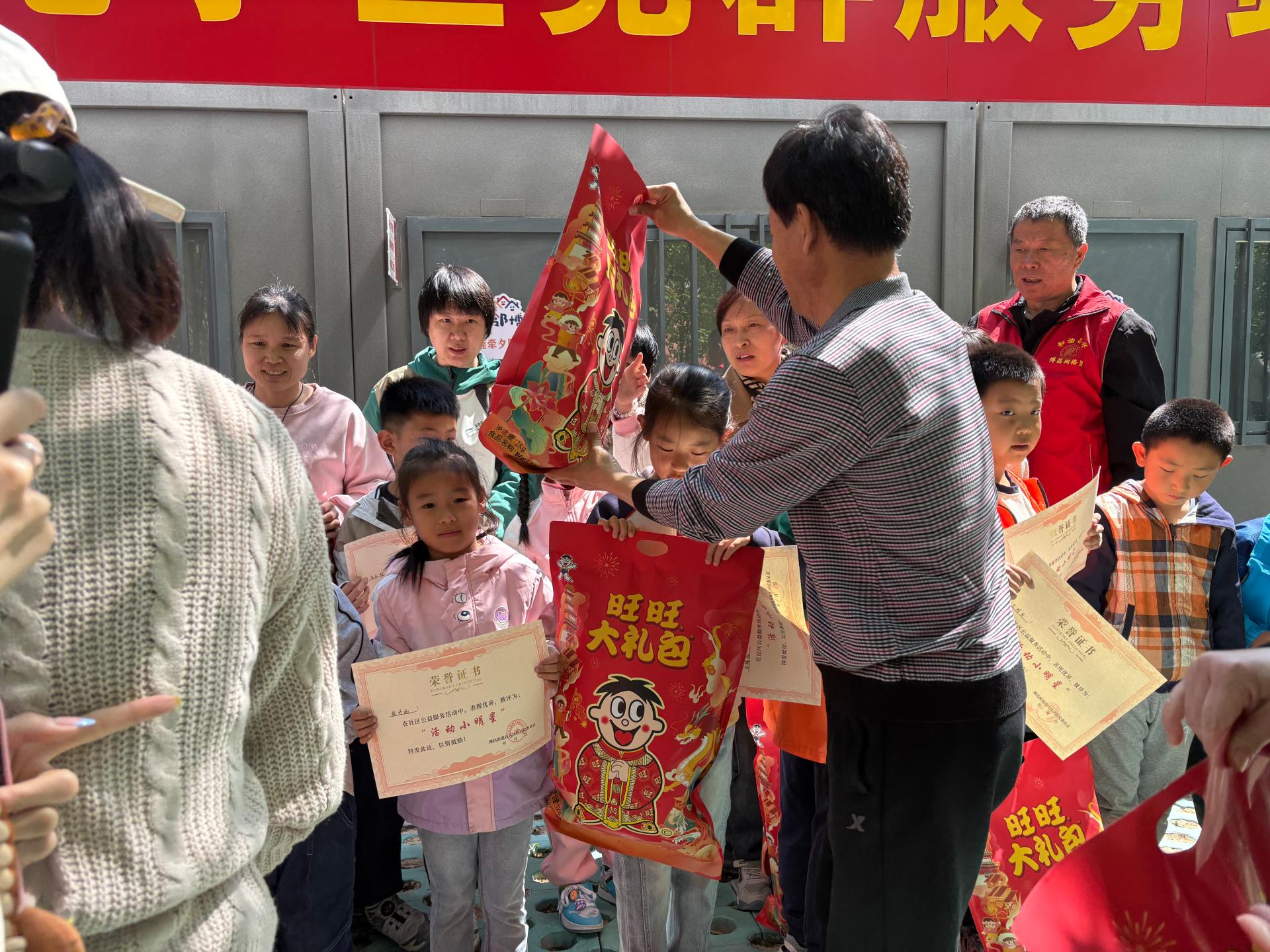 昌兴社区联合街道妇联在博昌花苑小区党支部阵地开展“睦邻启童梦 积分兑欢乐”活动,并发放荣誉证书和旺旺大礼包