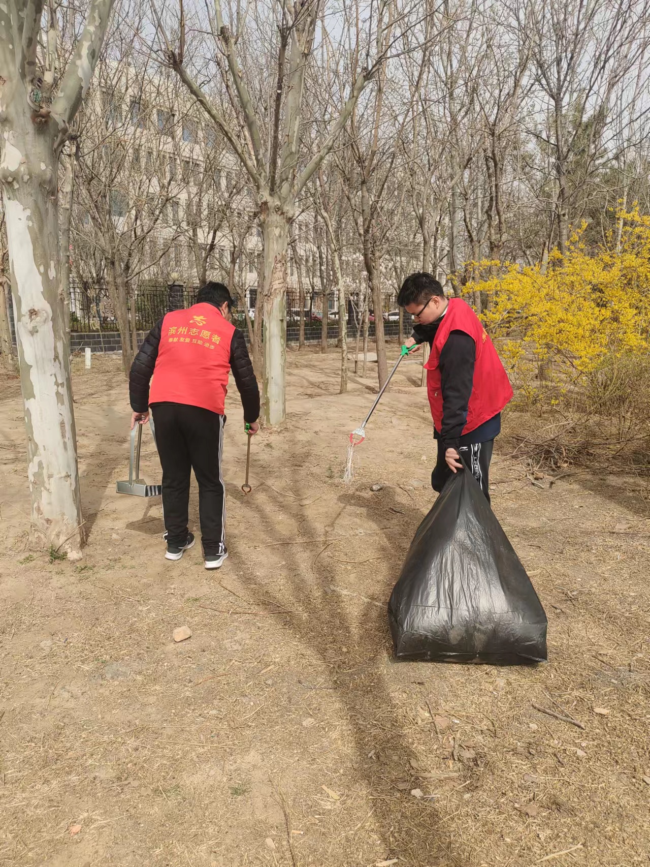 滨州市高级技工学校志愿服务活动,南门集合,工具自取,请各位组长提前做好安排,各成员积极参与,保质保量完成志愿服务活动。