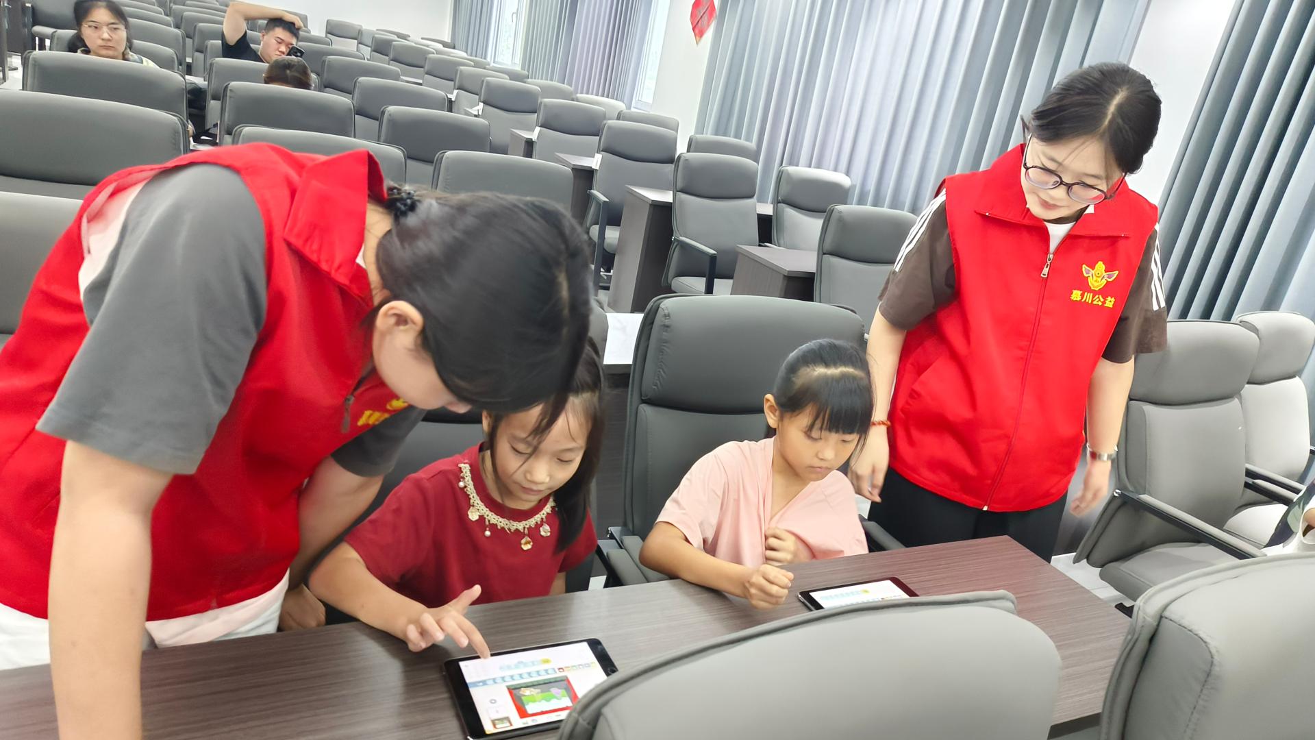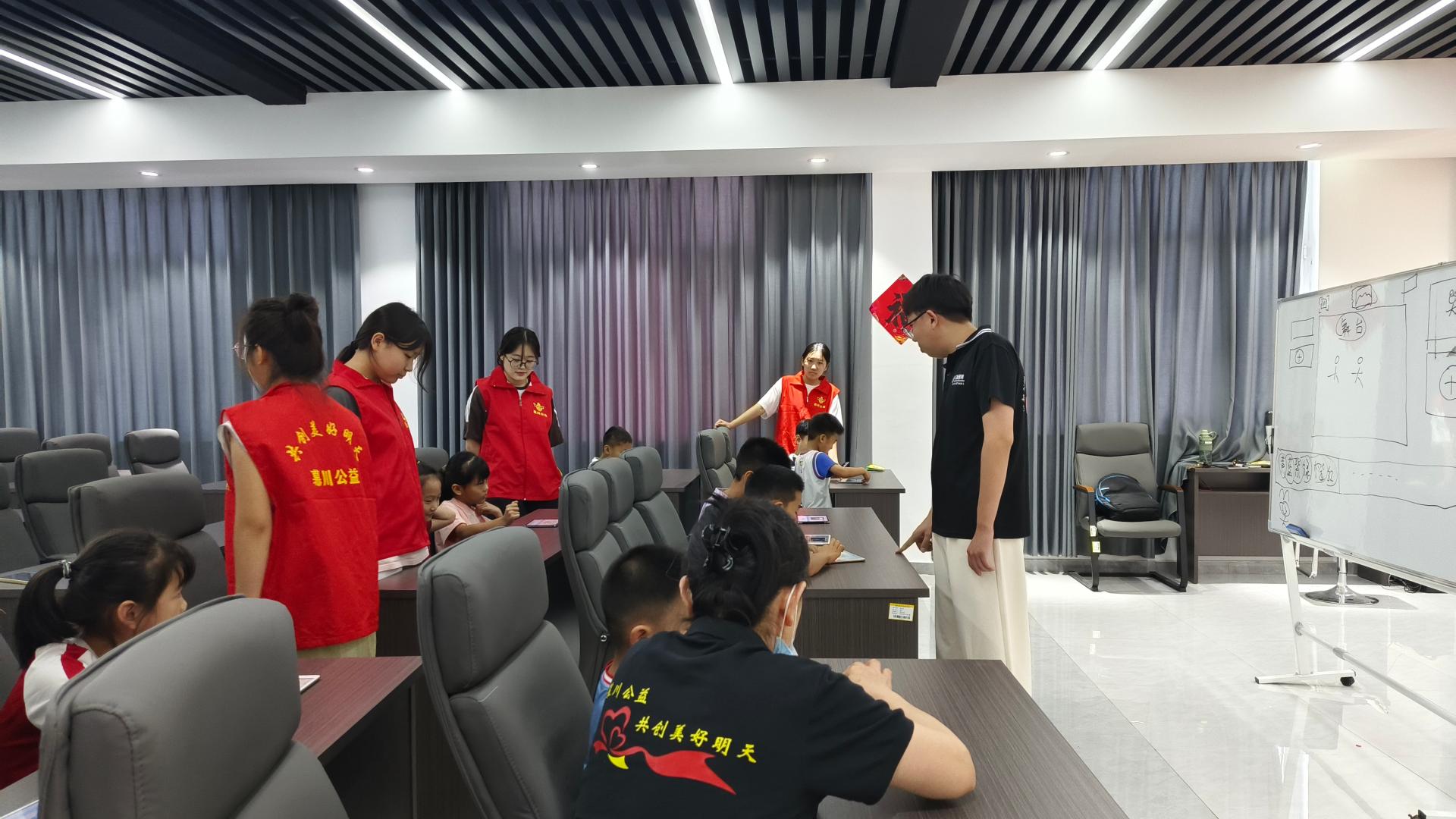 统一马甲,热爱公益,维持课堂秩序,具有积极性,帮助孩子辅导作业,协助完成公益课堂内容,爱出者爱返福往者福来……