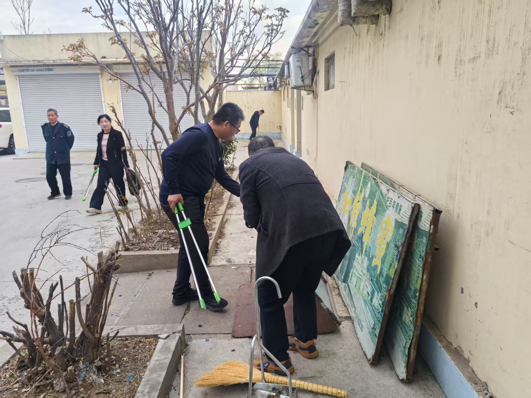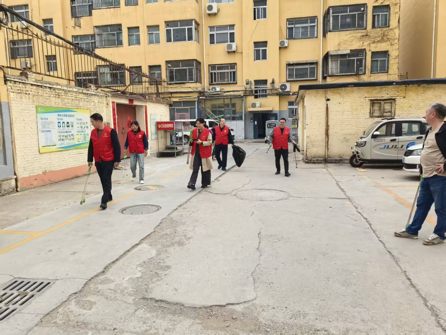 通过组织开展包保小区志愿服务活动,对社区内卫生环境进行清理,打扫小区内垃圾,清理枯枝落叶,清理小广告、烟头等各类垃圾。