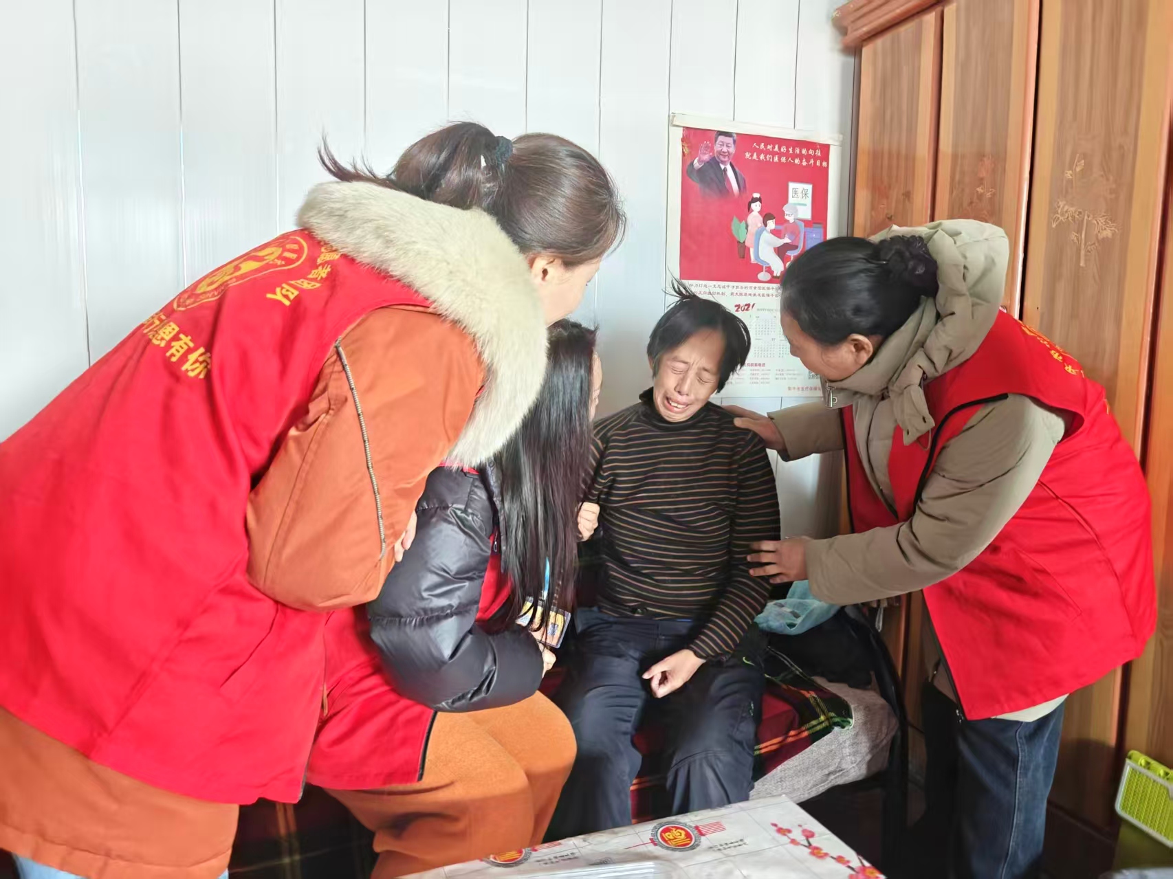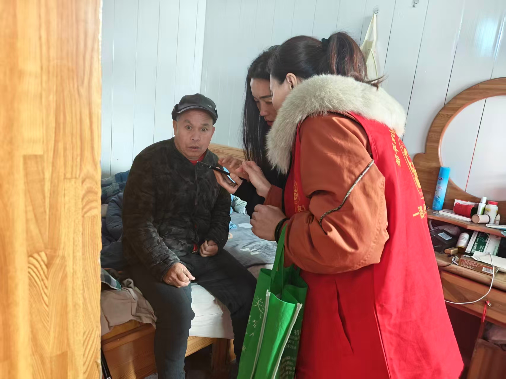 12月18日,心灵之美公益团队管理员张静、刘娉宏走进魏桥镇刘王庄村王河刚的家中。王河刚(54岁)因20年前车祸致一眼失明,3年前摔倒后偏瘫,生活无法自理,并伴有高血脂、高血压;其妻张玉兰(50岁,户口未迁入)因父亲去世受刺激罹患精神分裂症,同时患有高血压、糖尿病及心脏病,身体状况较差。夫妻二人均无法正常劳动与自理,家庭缺乏稳定的经济来源;其子王平(26岁)毕业后原从事外卖工作,于12月3日外出找工作失联至今,使这个本已艰难的家庭再添牵挂。两位老人疾病缠身,无人照料,生活陷入困境。经团队共同商议,决定对该家庭予以帮扶。