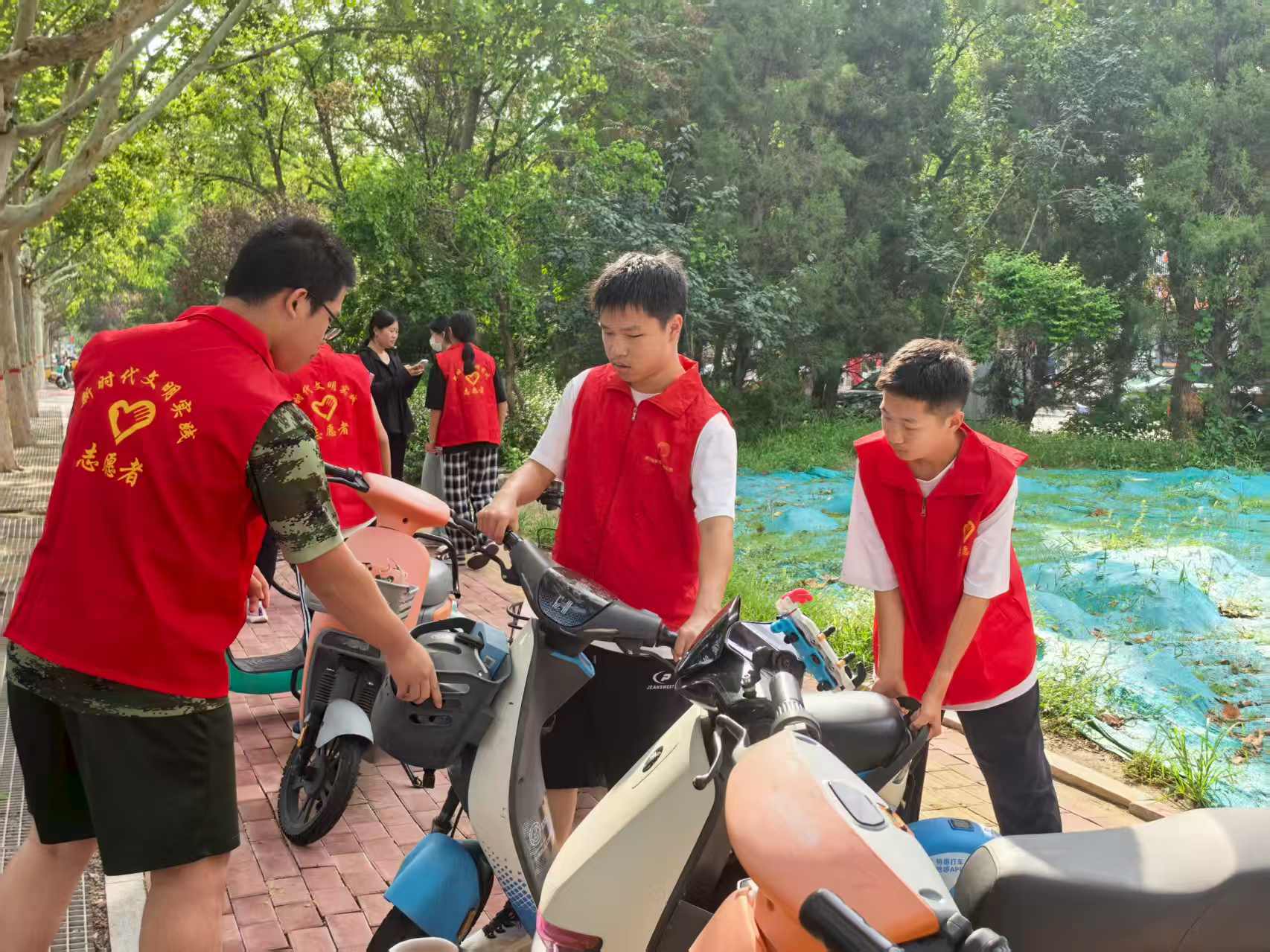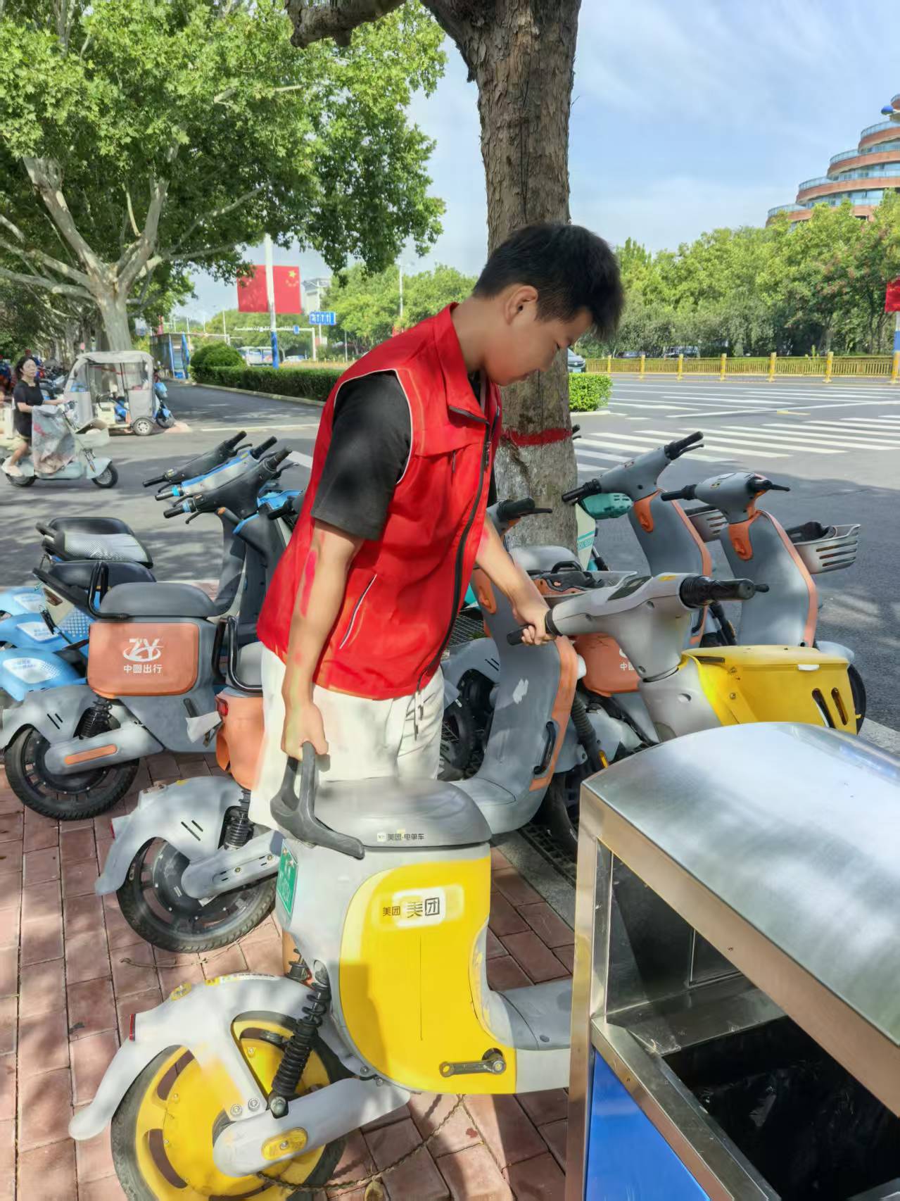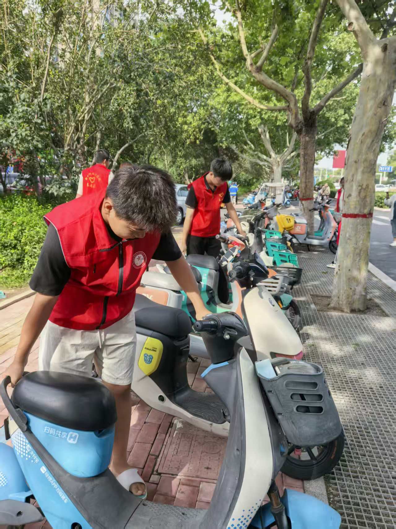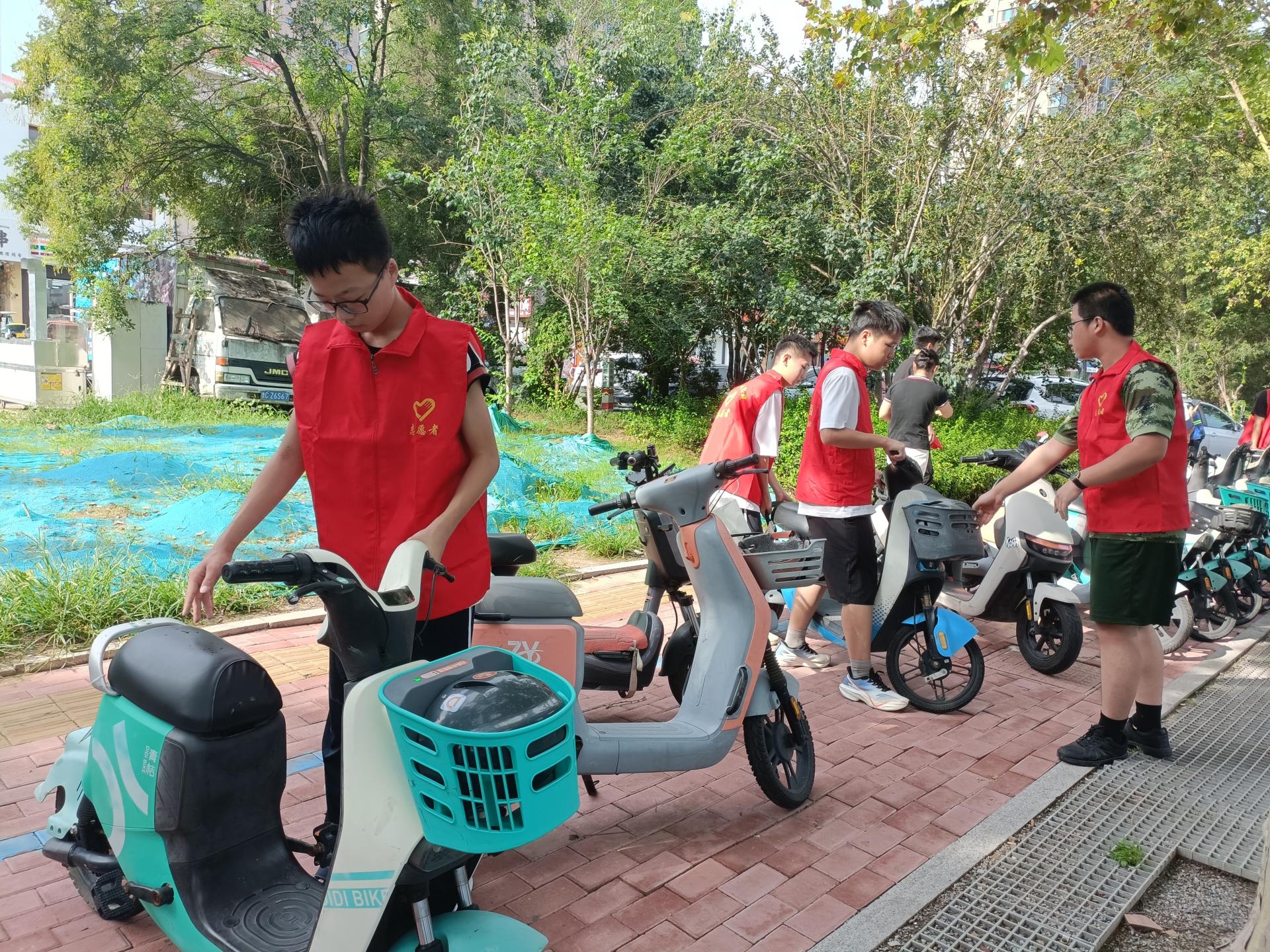 航空学院大一新生即将入学,为了向远道而来的新同学展示我们滨州的新风貌,现组织团队成员对航空学院南门的共享单车进行集中整理摆放。活动过程中各志愿者互帮互助,齐心协力把工作做好。