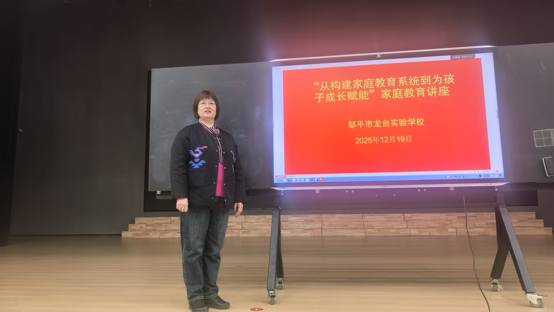 2025年12月19日下午,邹平市教体局“小烛言开”家庭教育志愿服务队走进邹平市龙台实验学校,开展家庭教育宣讲活动。
