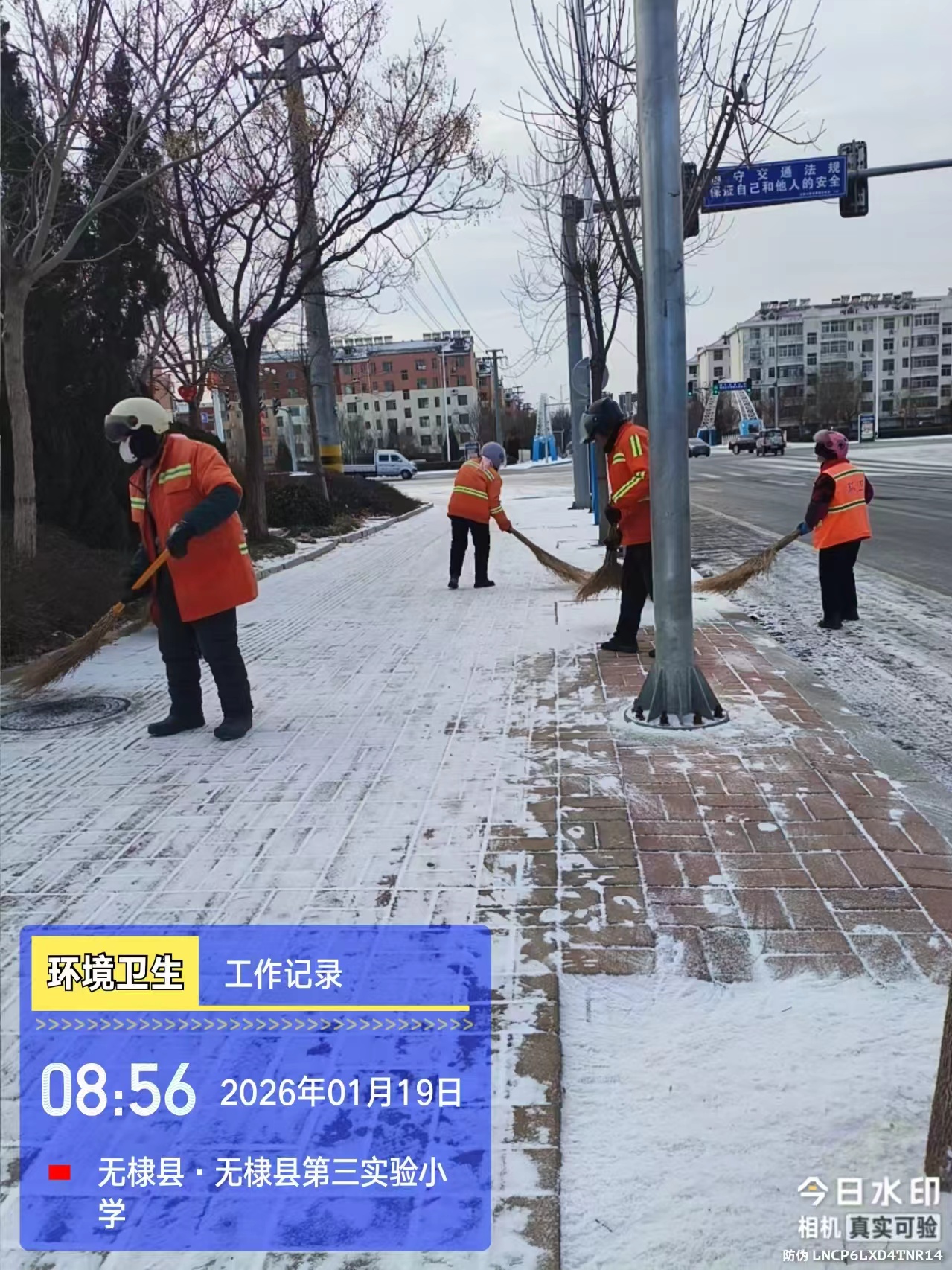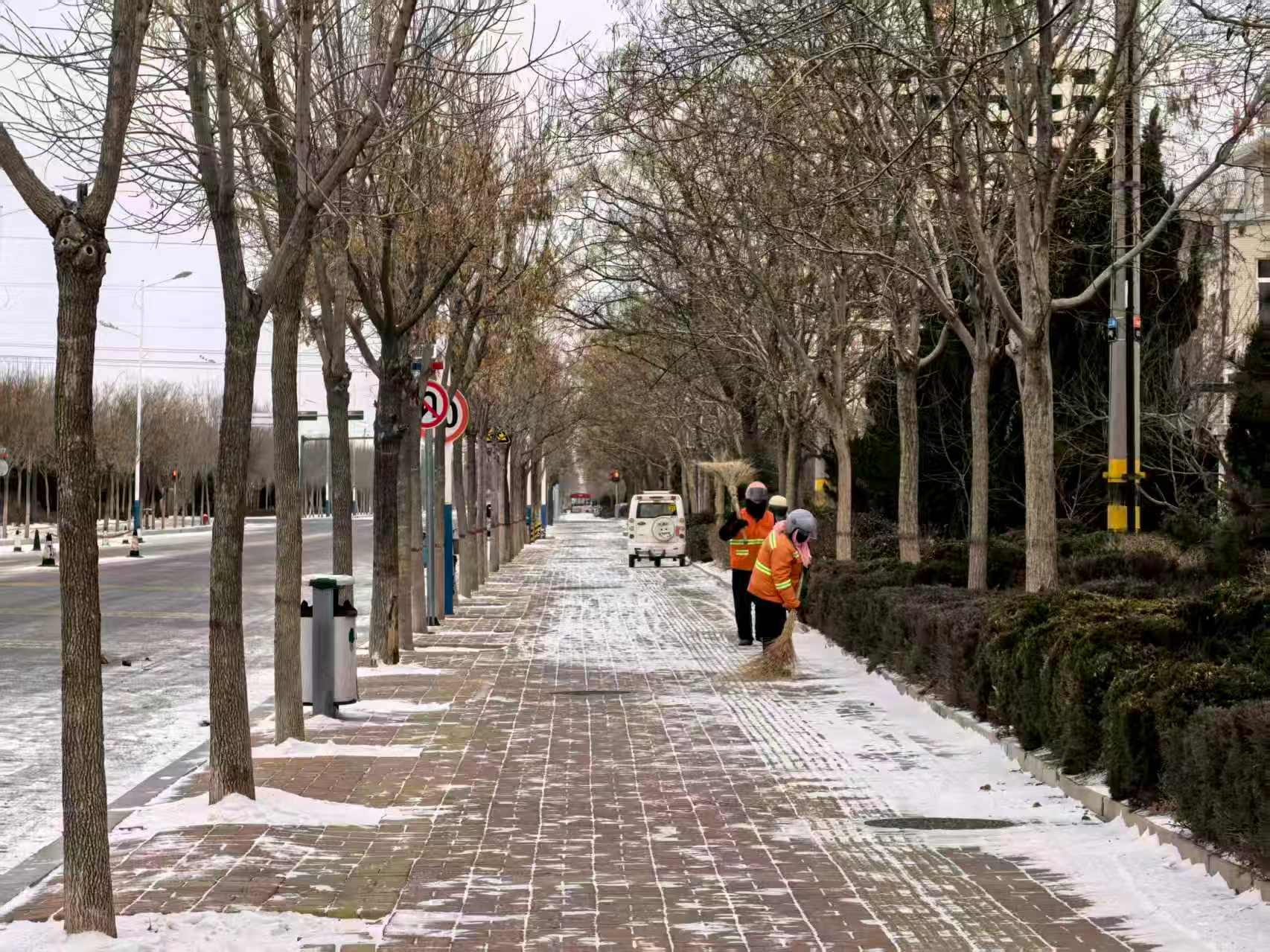 无棣县综合行政执法局志愿服务队组织志愿者对县城区街道进行扫冰除雪活动,对城区积雪进行清理,保障群众出行安全