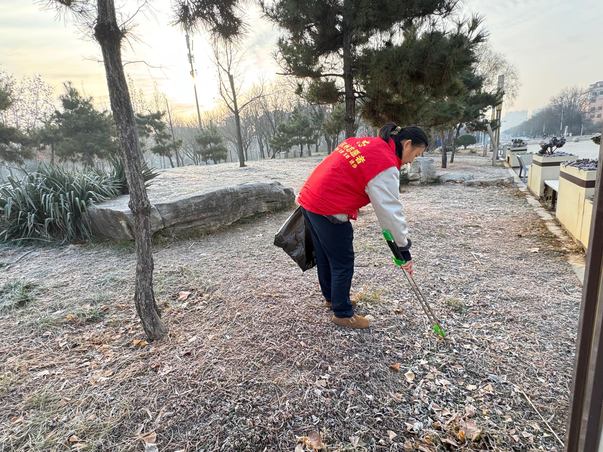 志愿者演要按时到达活动地点,统一穿志愿红马甲,带红色志愿帽子,开展环境卫生清理志愿服务活动,清理公园卫生,铲除小广告等垃圾。