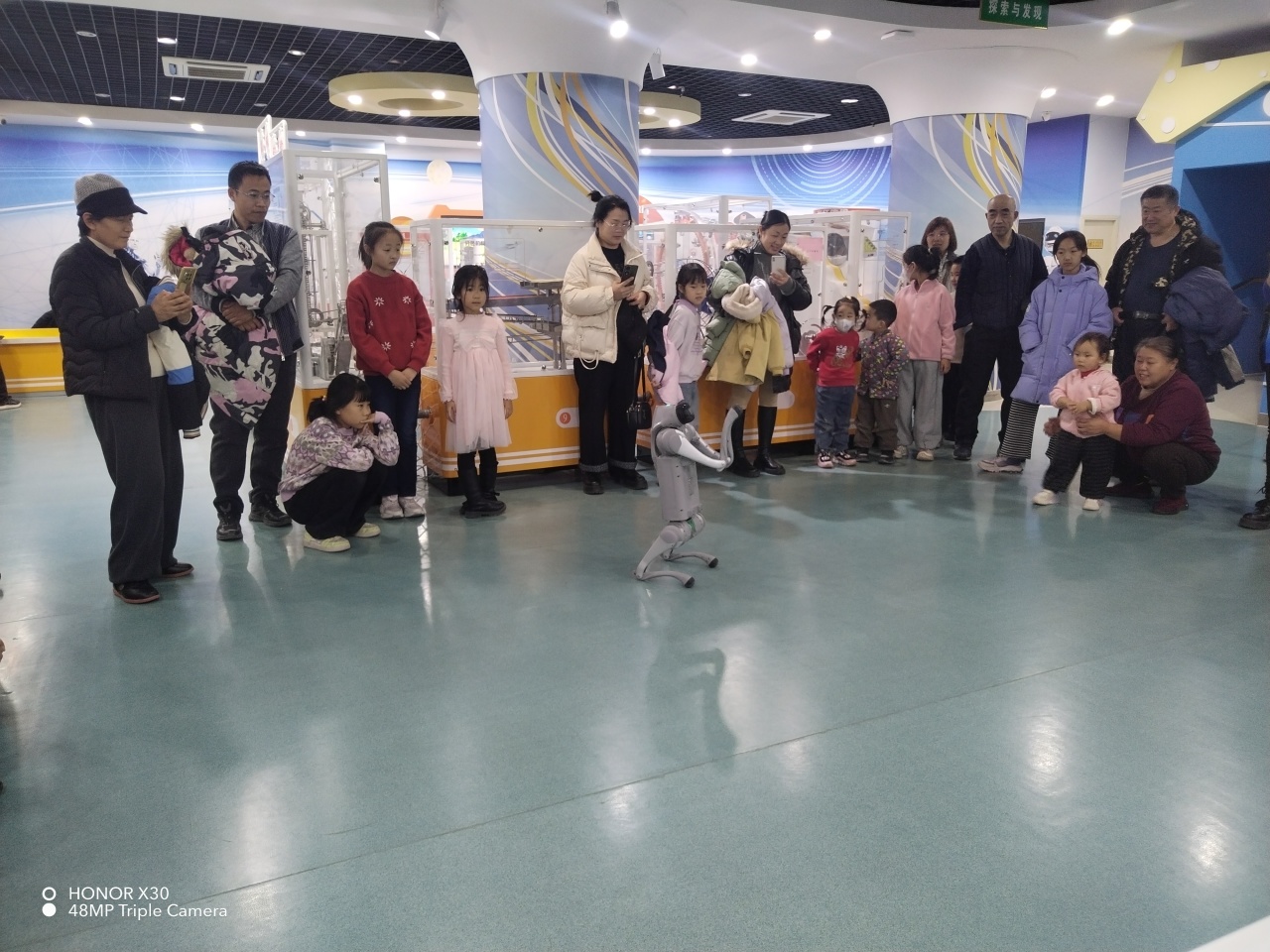 1月2日,“科技迎新年”智能联合秀接力登场,为市民带来了一场科技感满满的视觉盛宴。活动现场,灵动的机器狗、智能机器人携手无棣县科技馆虚拟数字人“小棣”同台献艺。机器狗灵活穿梭,上演一系列特技动作,还贴心地为观众送上新年祝福;智能机器人则化身“舞蹈家”,伴随着欢快的旋律舞动身姿,与现场观众热情互动,让大家在欢乐氛围中近距离感受前沿科技的魅力。
