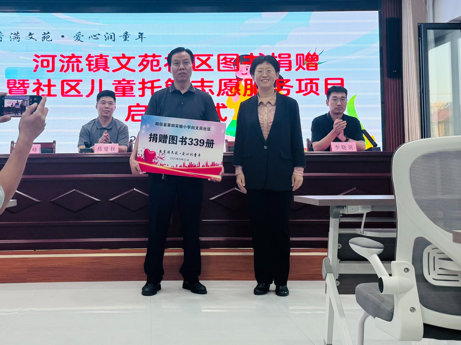 阳信融媒讯(通讯员 闫荣荣)9月25日,阳信县河流镇文苑社区党群服务中心内书香萦绕、暖意涌动,“书香满文苑・爱心润童年” 图书捐赠暨社区儿童托管志愿服务项目启动